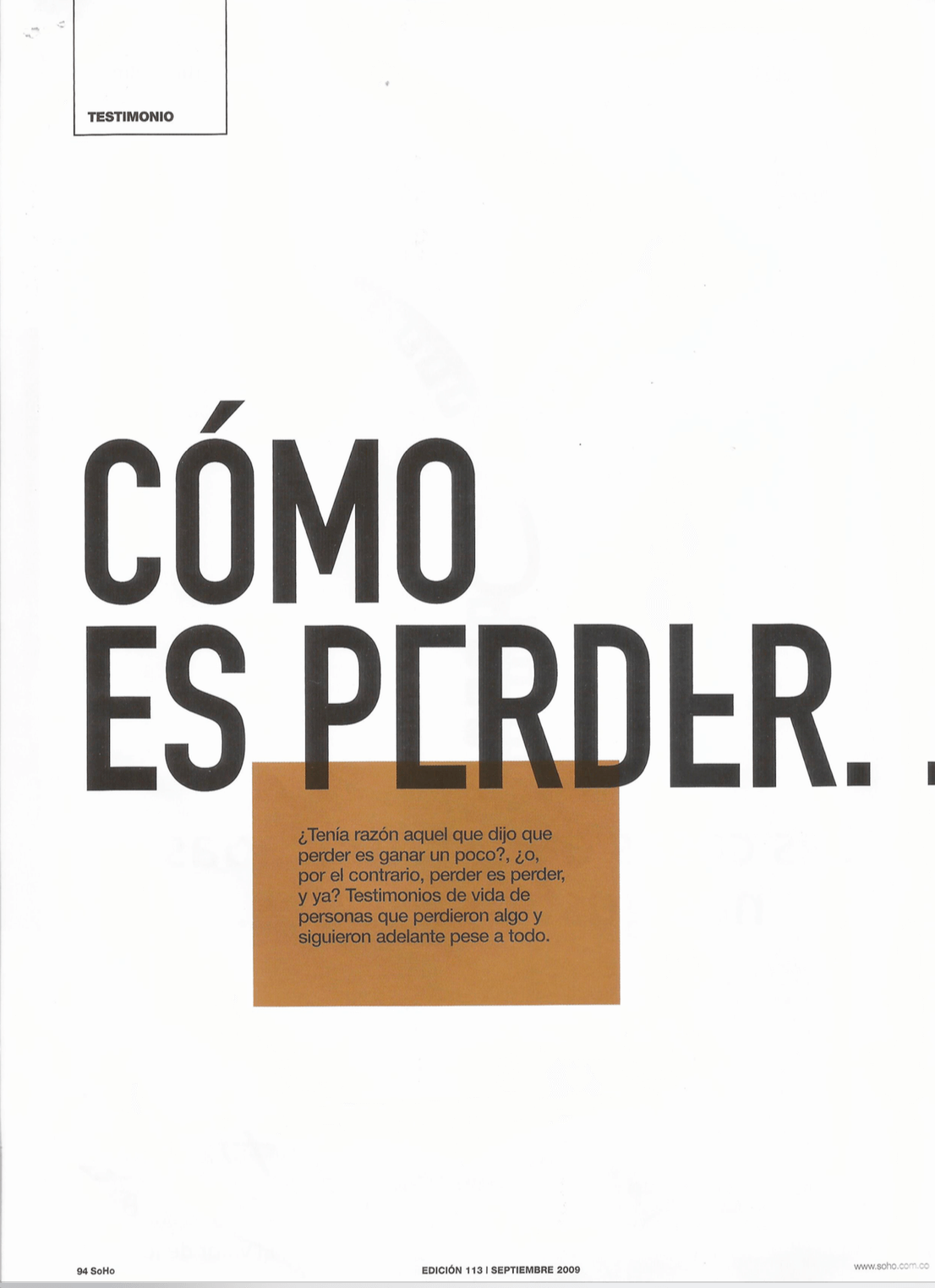 Ver más¿Tenía razón aquel dijo que perder es ganar un poco?, ¿O, por el contrario, perder es perder y ya? Testimonios de vida de personas que perdieron algo y siguieron adelante pese a todo.