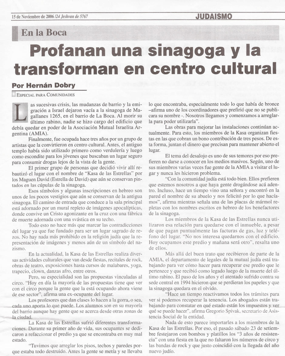 Las sucesivas crisis, las mudanzas de barrio y la emigración a Israel dejaron vacía la sinagoga de Magallanes 1265, en el barrio de La Boca.