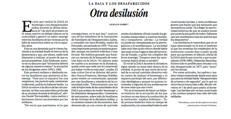 Ver másLa DAIA y los desaparecidos. Para leer todo el artículo en pdf, clic aquí.