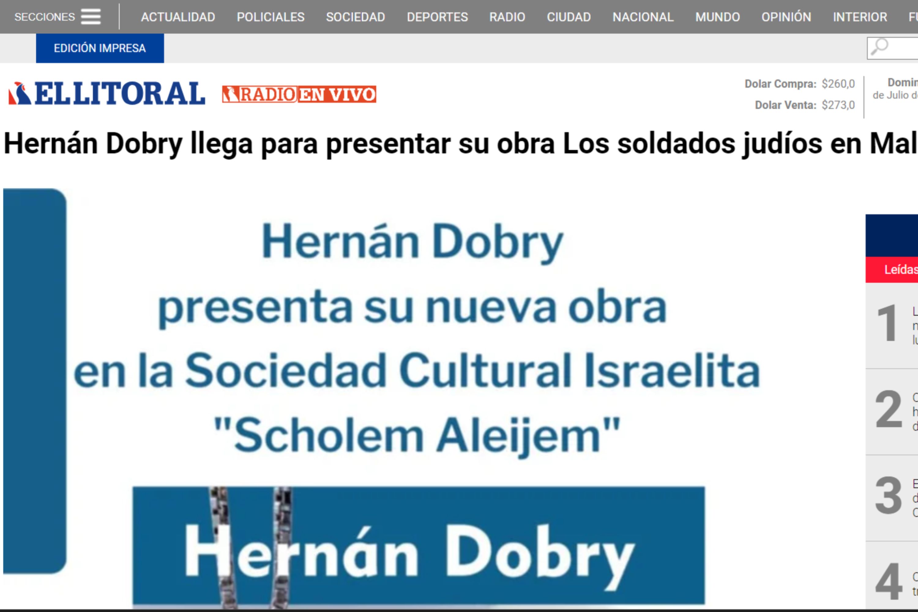 La FM 98.3 Santa María de las Misiones entrevistó al periodista Hernán Dobry sobre su nuevo libro “Los soldados judíos de Malvinas”, publicado por Ediciones Hebraica.