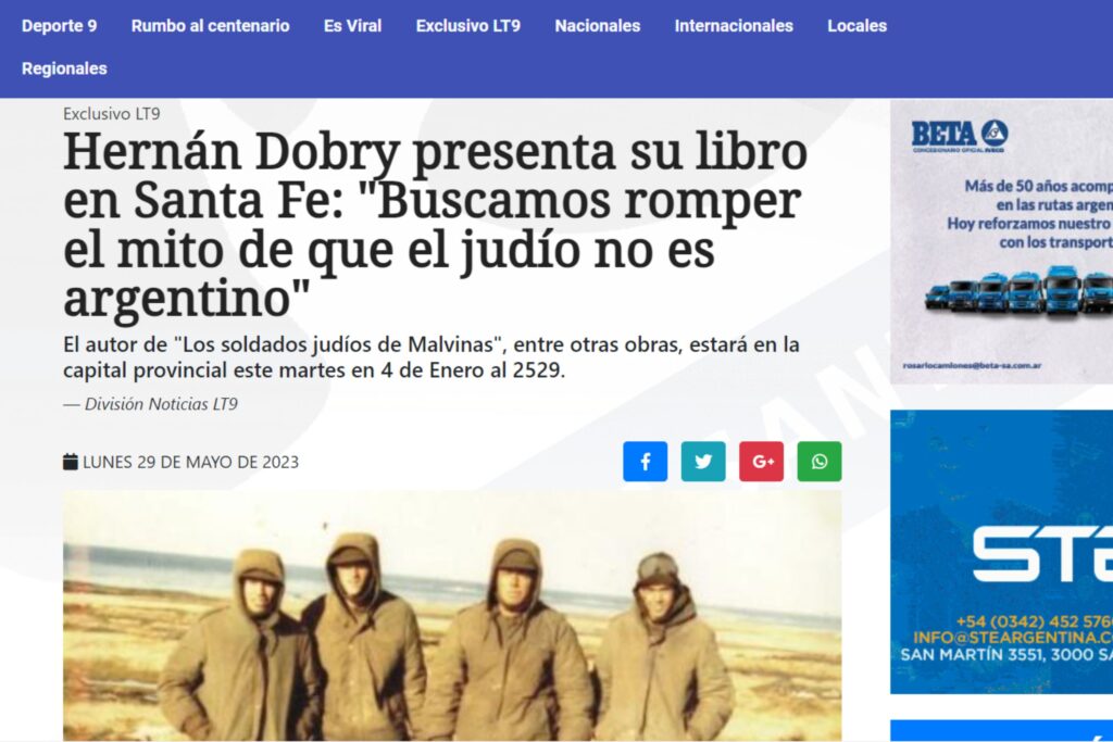 l periodista y escritor Hernán Dobry, visitará la ciudad de Santa Fe para presentará su libro “Los soldados judíos en Malvinas”. La cita es este martes a las 20 horas este martes en 4 de Enero al 2529.