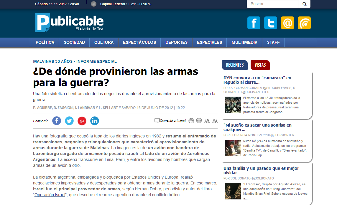 El diario Publicable, cita la investigación realizada por Hernán Dobry como historiador y especialista sobre La Guerra de Malvinas.