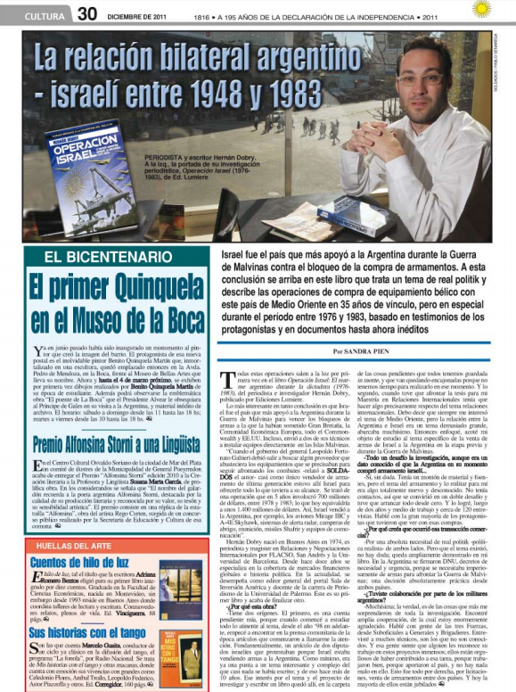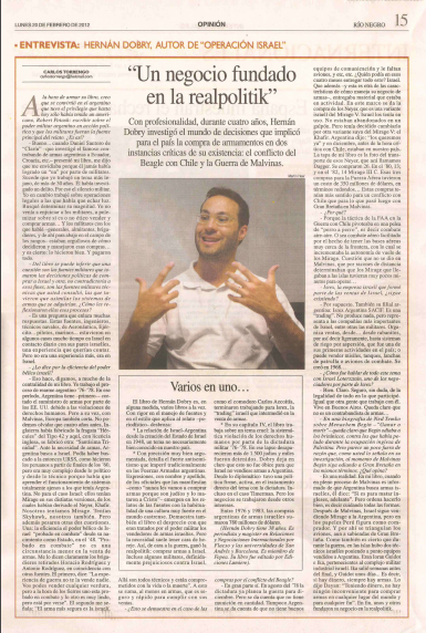 El diario de Río Negro entrevistó a Hernán Dobry por su libro Operación Israel.