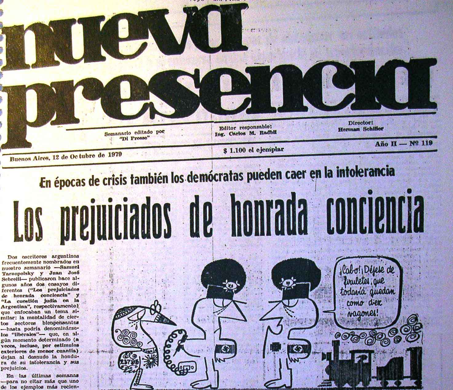 En tanto, el periodista destaca que “el protagonismo de Schiller y ‘Nueva Presencia’ está arrinconado en el olvido por quienes investigan la relación entre la prensa y la dictadura, a pesar de que ‘Nueva Presencia’ llegó a tirar 20.000 ejemplares. Incluso fue combatido por franjas de las propias organizaciones judías; sectores de la DAIA, por ejemplo. La fuerza, el protagonismo que Schiller imprimía a las denuncias, molestaba, era un aguijón con visos de intolerable para los judíos argentinos que, si bien reconocían la criminalidad del régimen, buscaban no irritarlo. Incluso, como lo demuestro en el libro, hubo planos burocráticos de la DAIA que trataban muy mal a familiares que iban a buscar respaldo de la entidad para denunciar la desaparición de un hijo, un padre”.